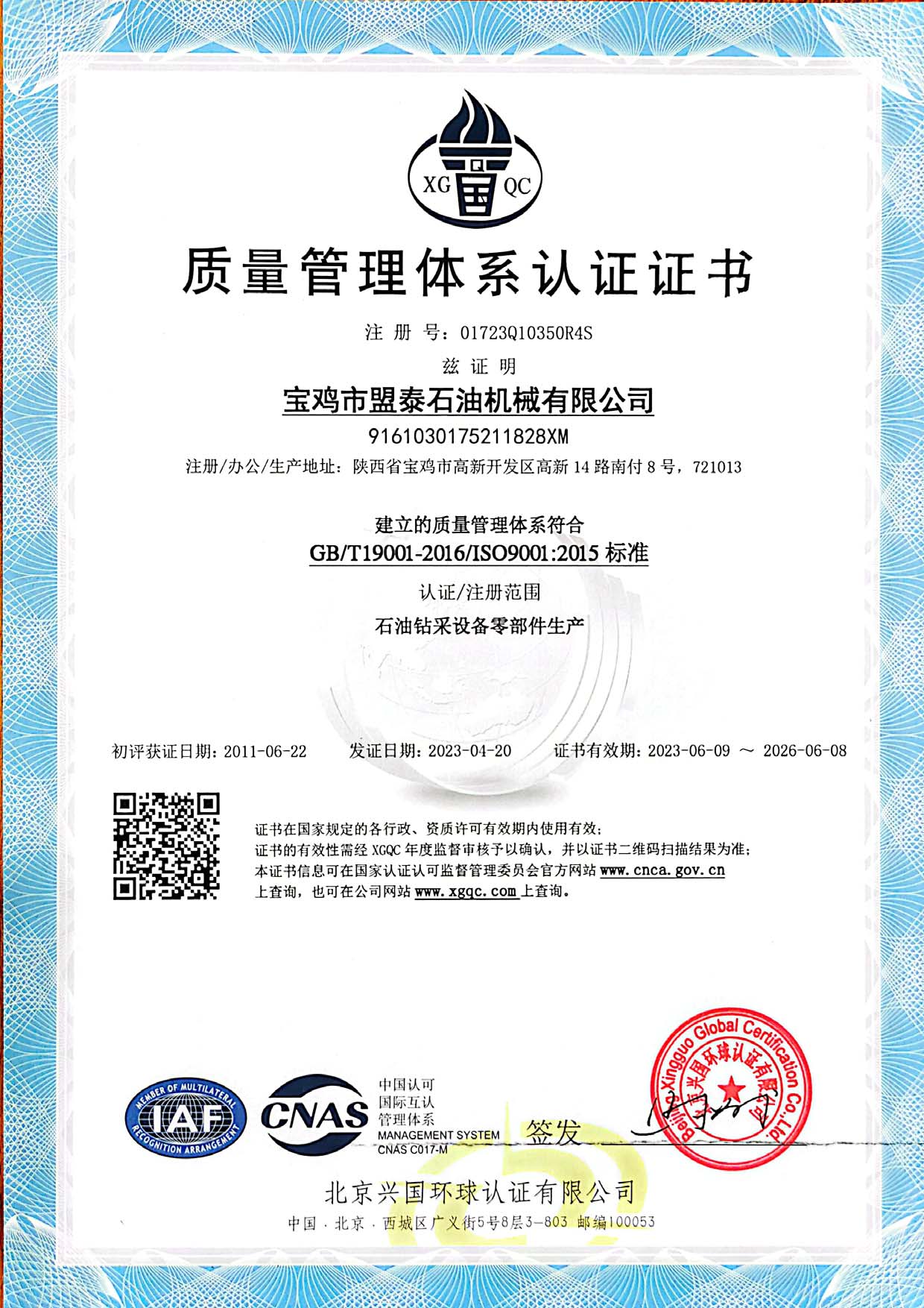 質量管理體系認證證書